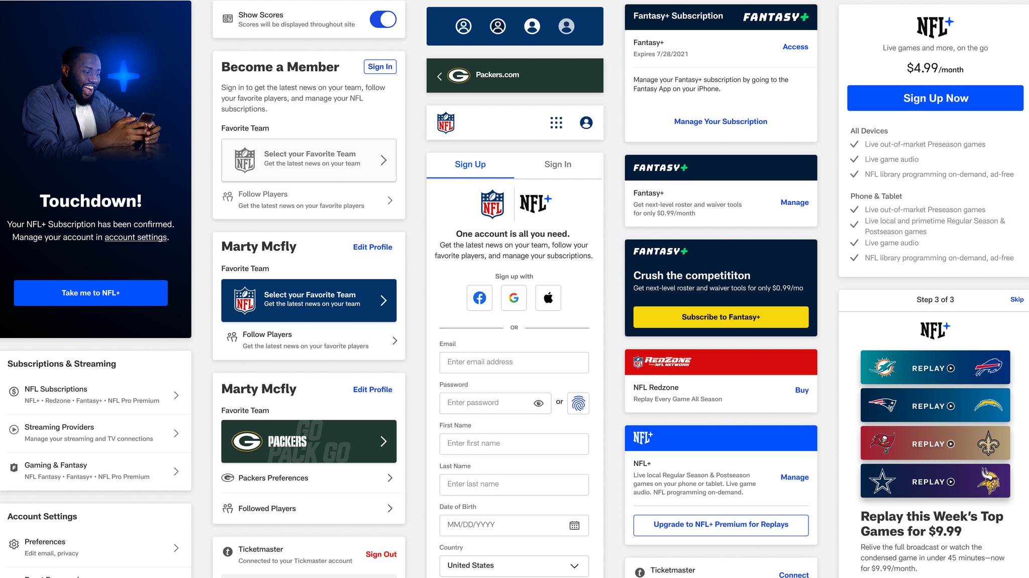 Featured a simplified sign-up that deferred optional steps and a redefined universal account page that better serves fan needs.